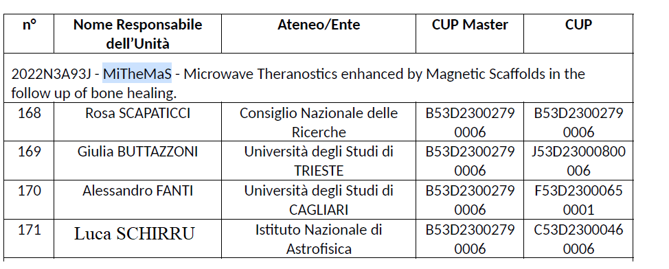 – group of Clinical Orthopedics, from the Depart. of Surgical Sciences, which will be not directly involved but it will support the UniCa unit.